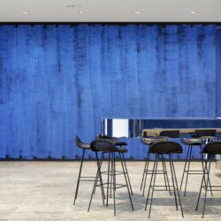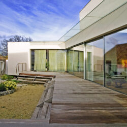 Die hofseitige Orientierung der großflächigen, öffenbaren Glasfassade ermöglicht eine natürliche Querlüftung sowie eine flexible Nutzung als Kunst- und Wohnraum.